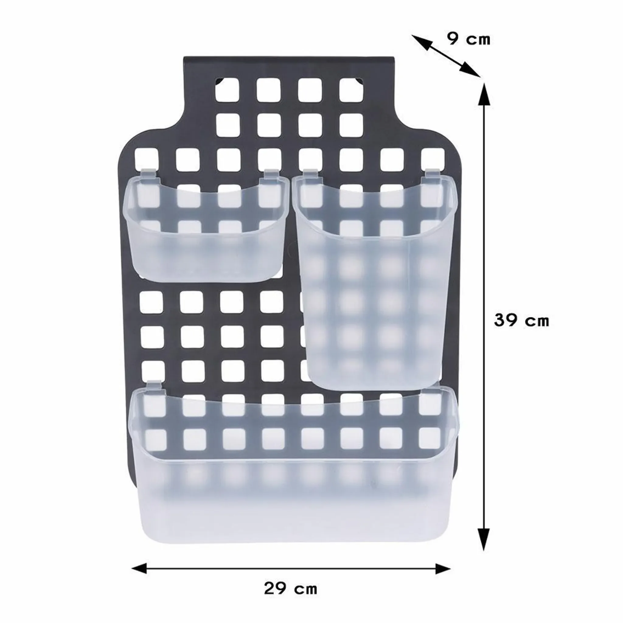 Highlights: Ohne Bohren montierbar, leicht & pflegeleicht, modernes Design, drei unterschiedlich große Körbe für optimale Organisation, vielseitig einsetzbar in Bad, Dusche oder Küche.