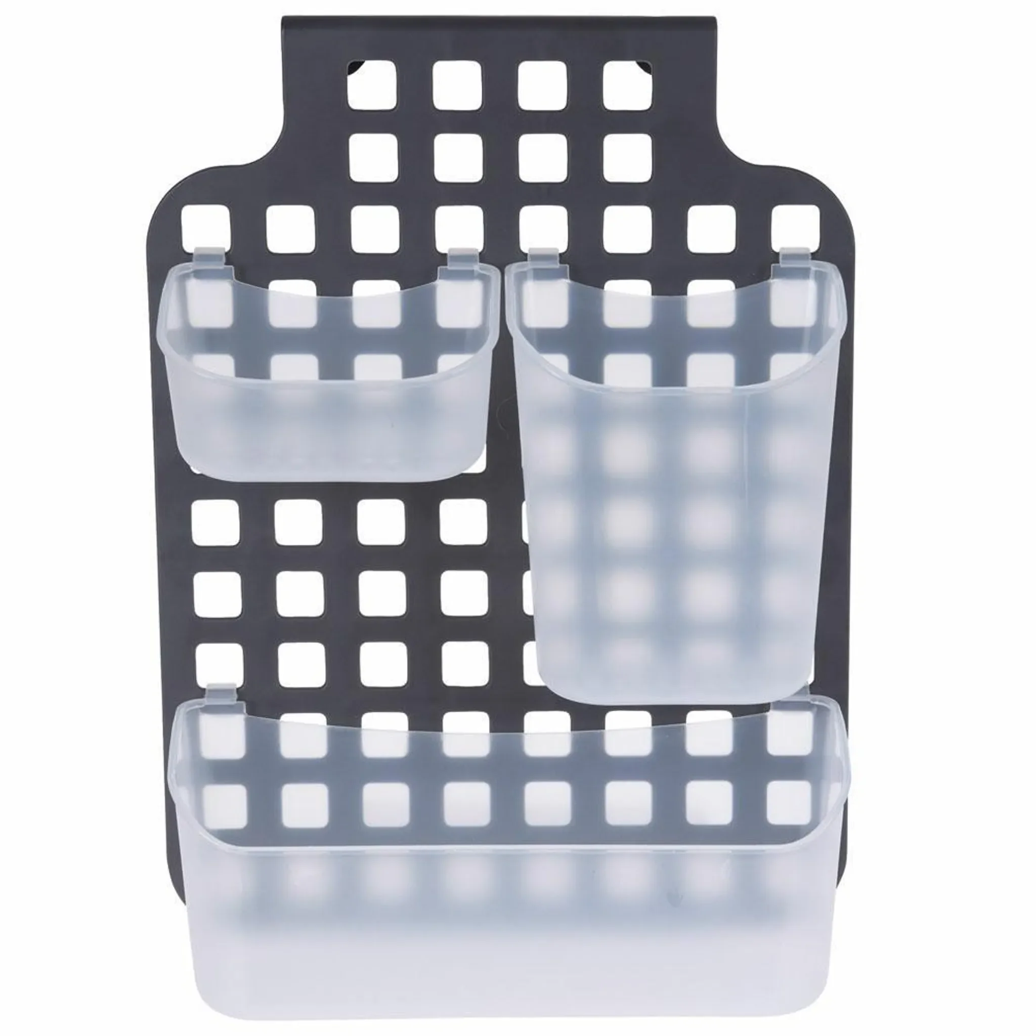 Der praktische Badezimmer-Organizer von Bathroom Solutions bietet mit seinen drei unterschiedlich großen Körben optimalen Stauraum für Duschgel, Shampoo, Lotionen und Accessoires. Das moderne Design in Weiß und Grau fügt sich harmonisch in jede Badezimmereinrichtung ein und schafft Ordnung bei minimalem Platzbedarf.
