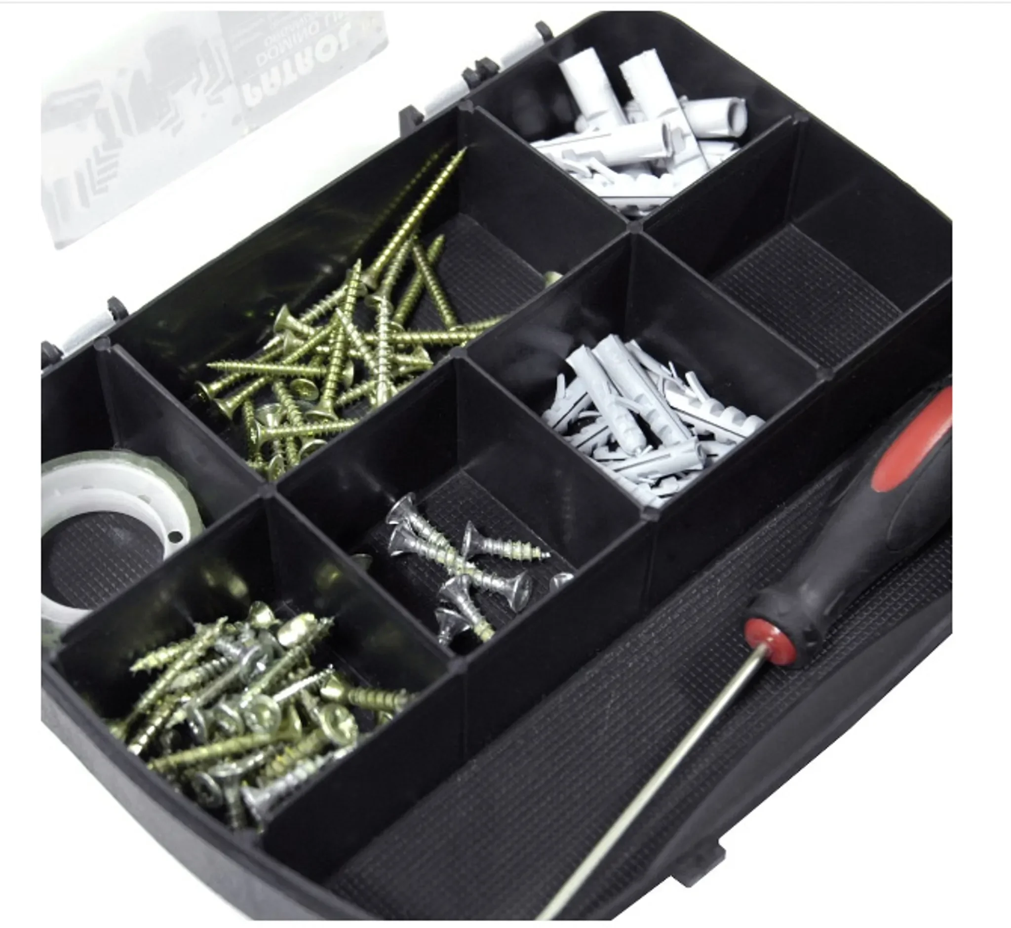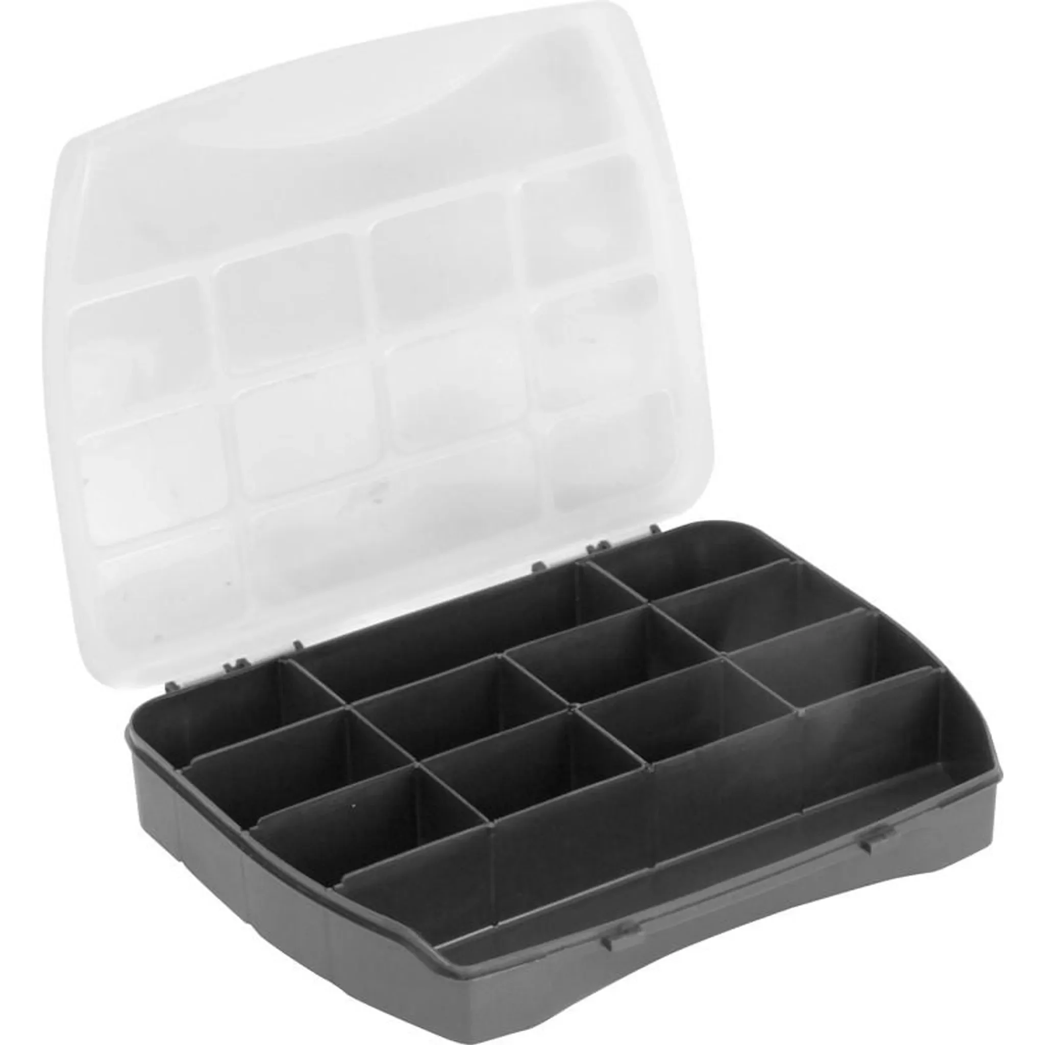 Schrauben, Büroklammern, Bastelmaterial oder Zubehör bleiben ordentlich verstaut und sofort griffbereit. Das robuste Kunststoffgehäuse kombiniert Stabilität mit niedrigem Gewicht und platzsparender Aufbewahrung.