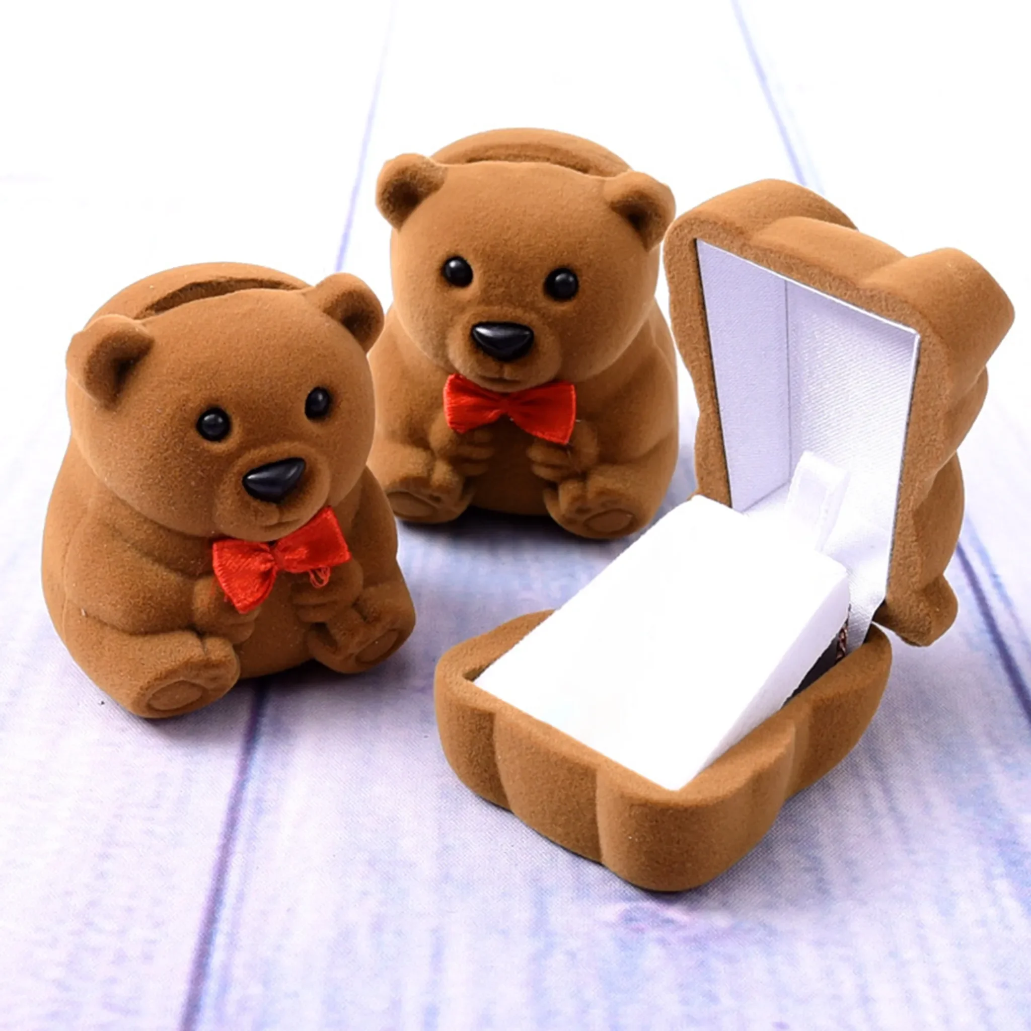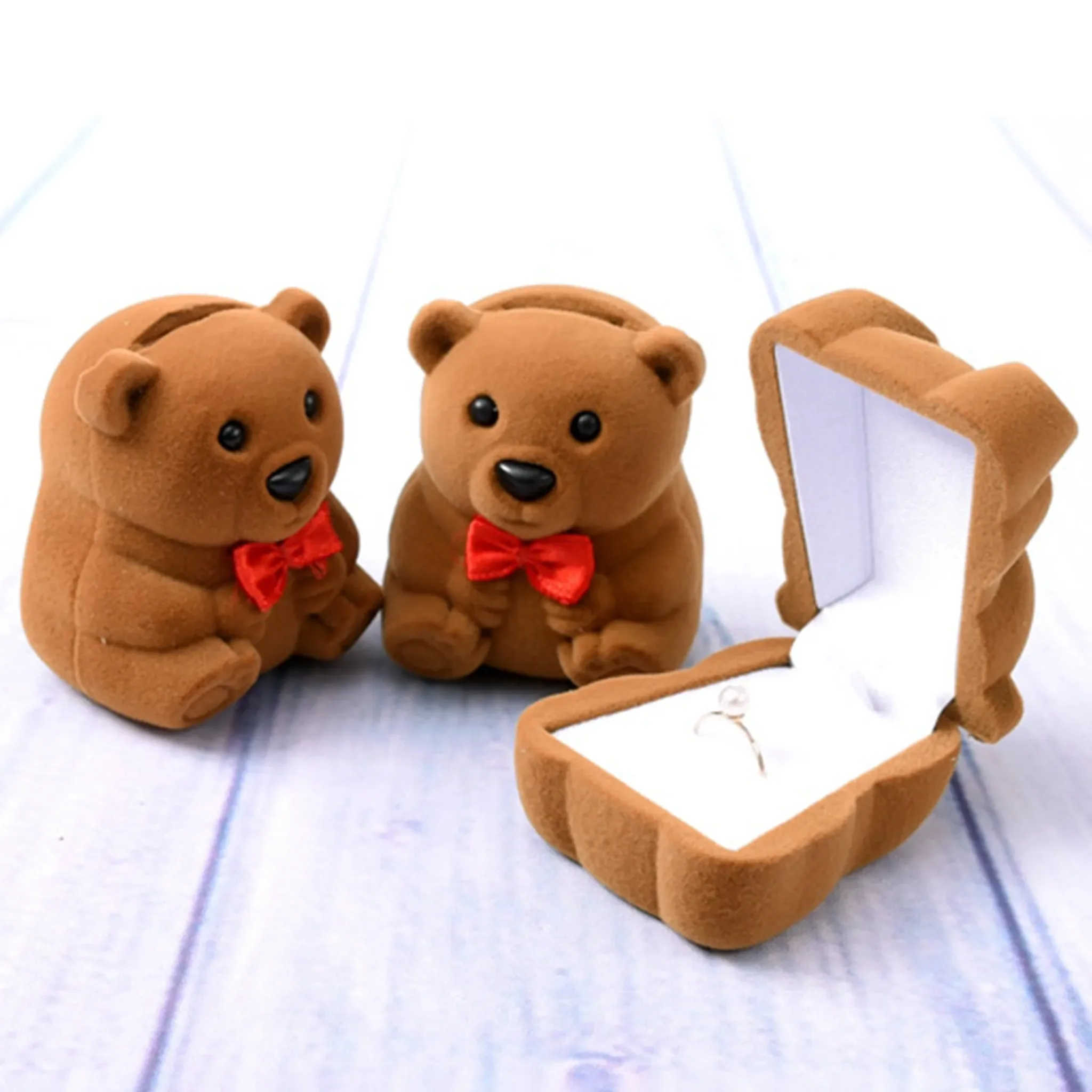Diese charmante Mini-Ringbox in Bärenform eignet sich ideal zur sicheren Aufbewahrung kleiner Schmuckstücke wie Ringe, Ohrringe, Anhänger oder schmale Armbänder. Das weiche Flanellmaterial mit feiner Textur schützt vor Kratzern und leichten Stößen und verleiht der Box eine elegante Optik.