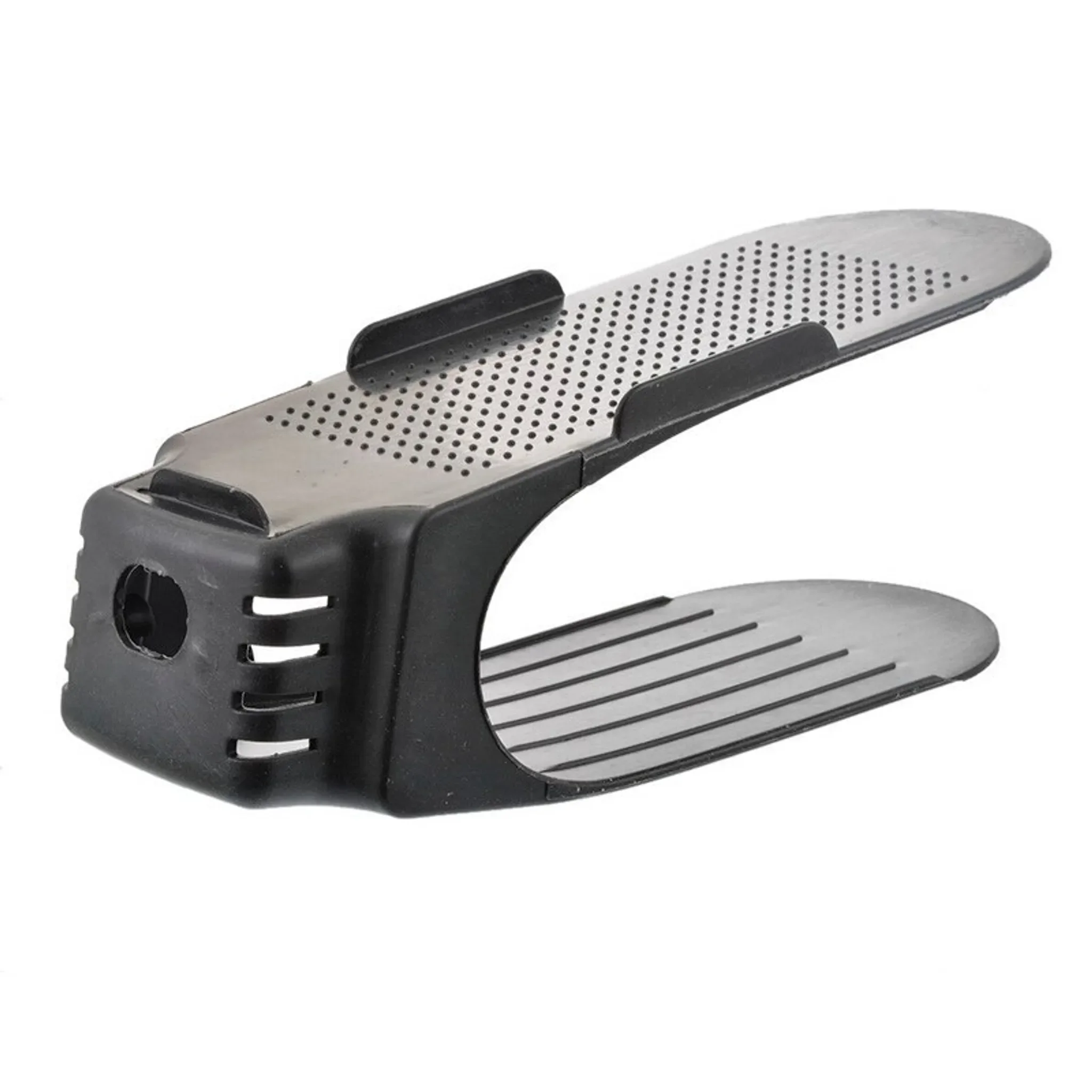 Dieser Schuhhalter-Organizer schafft Ordnung im Flur, Kleiderschrank oder Schuhregal und ermöglicht eine deutlich platzsparendere Aufbewahrung. Durch das Stapelprinzip können zwei Schuhe übereinander gelagert werden – ohne Verwechslung und ohne dass Sohlen mit Obermaterial in Kontakt kommen.