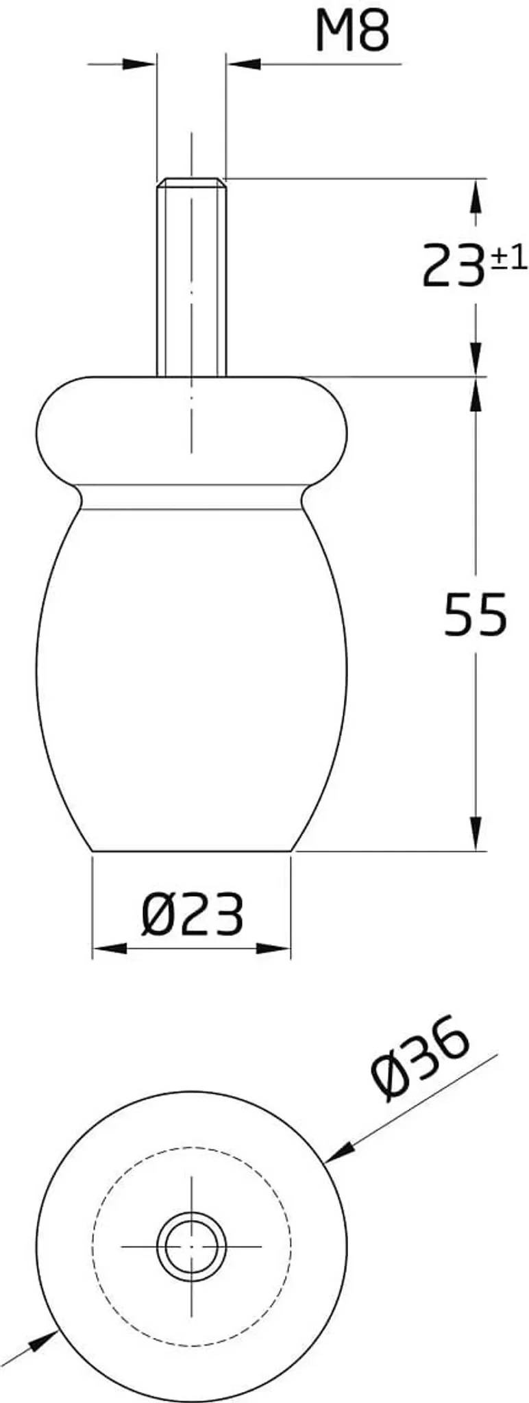 Mit Ø 36 mm, 55 mm Höhe und einem fest montierten M8-Gewindestift eignet sich der Stempel ideal für Sofas, Sessel, Schränke oder Büro- und Wohnmöbel. Die hohe Tragfähigkeit von 150 kg sorgt für zusätzliche Stabilität im täglichen Gebrauch.