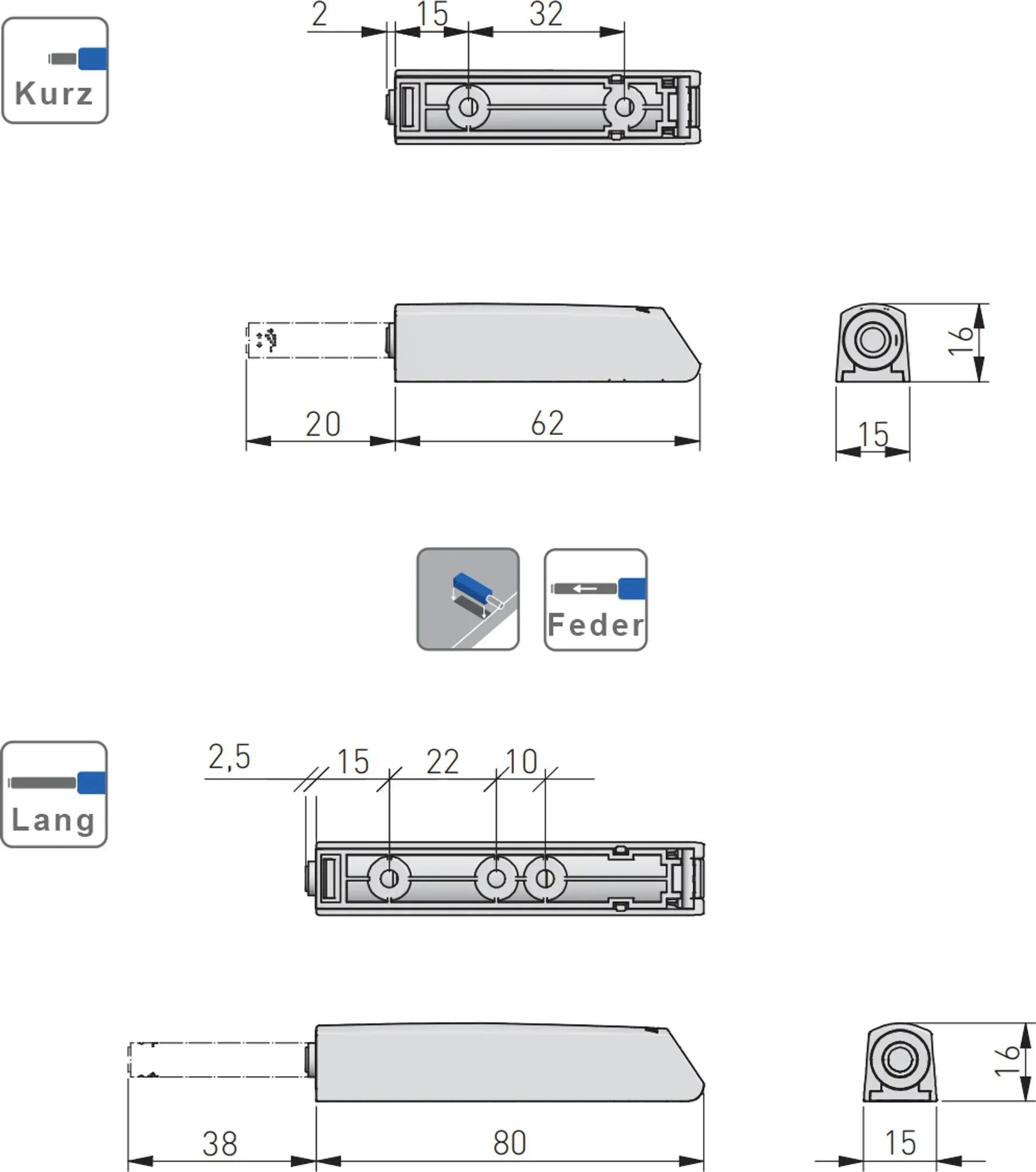 | Typ | Push-to-Open Druckschnäpper (lang) |