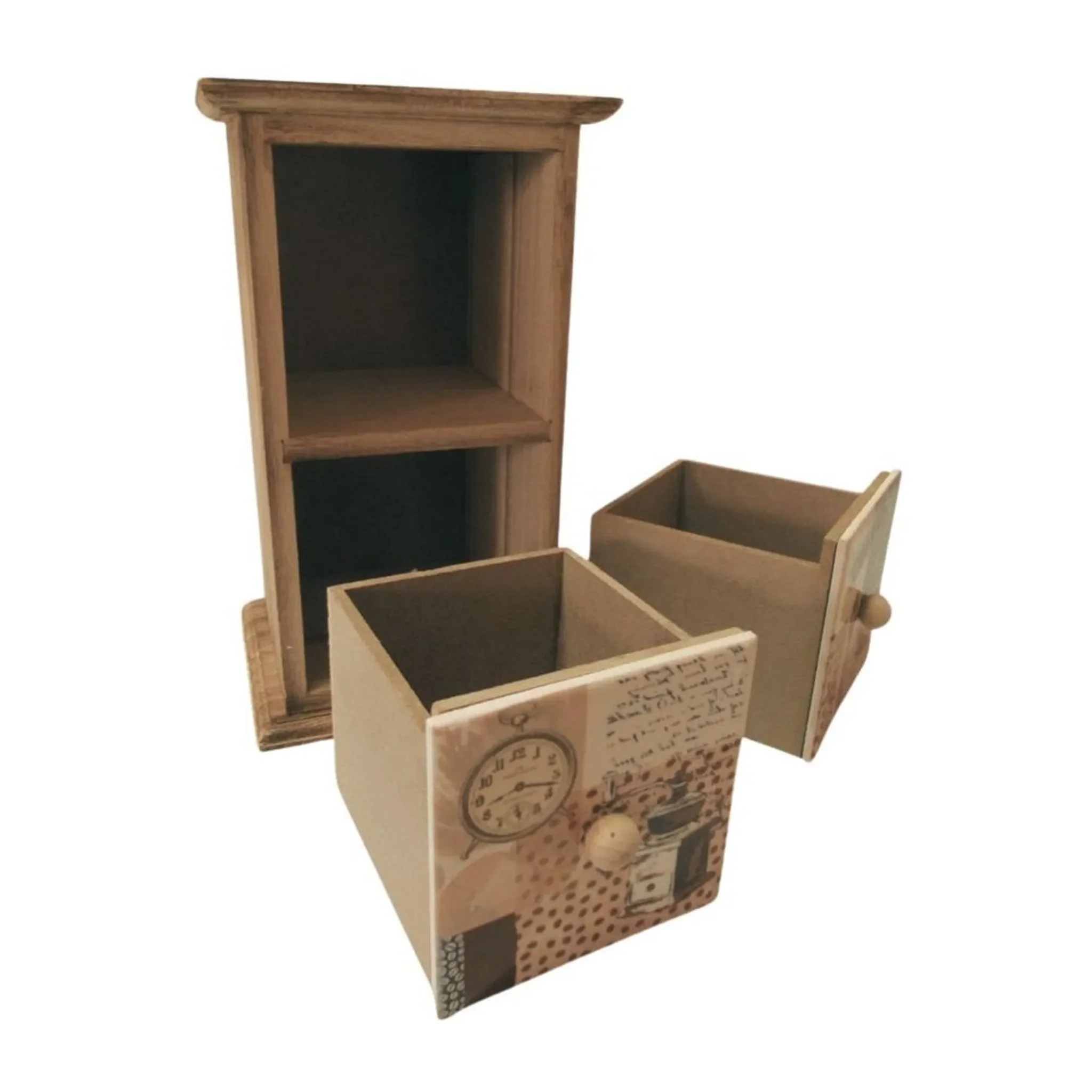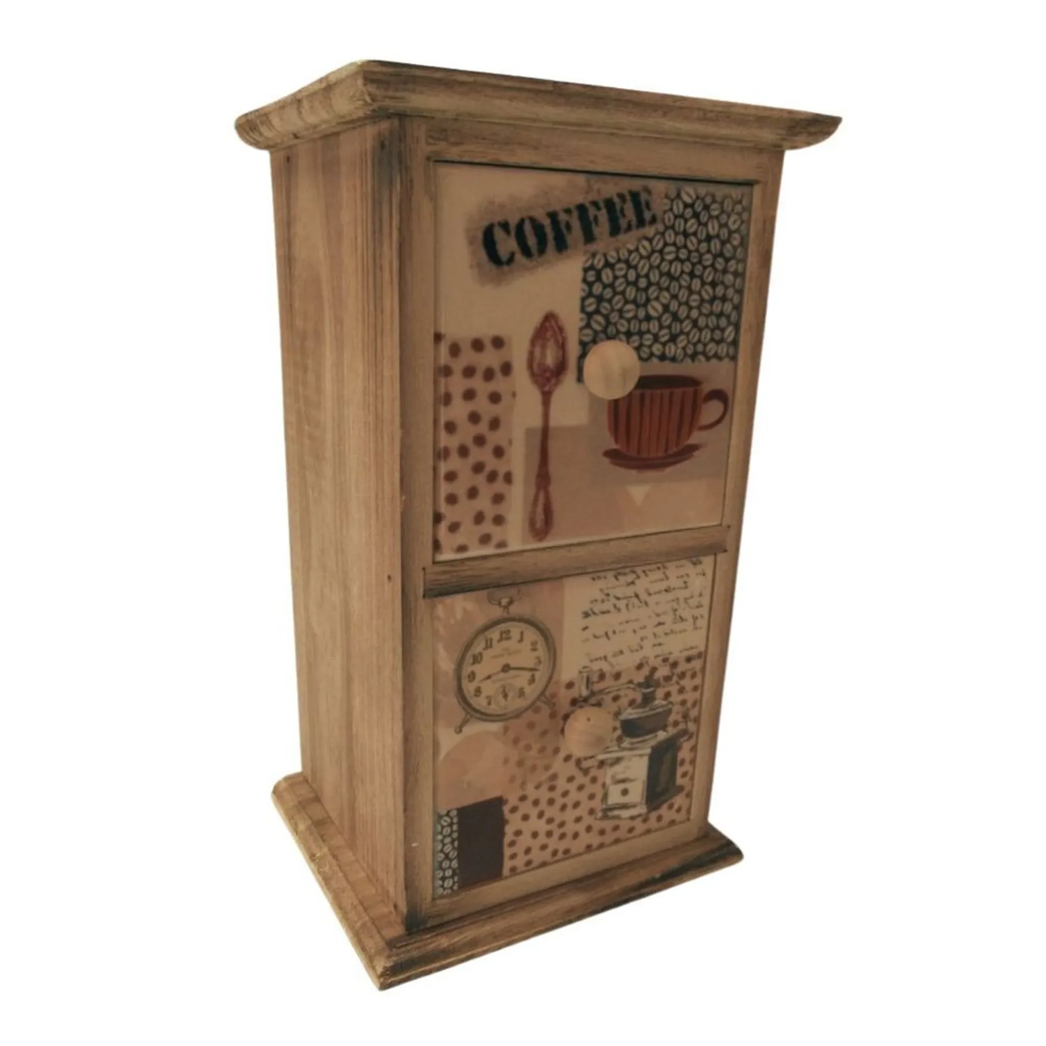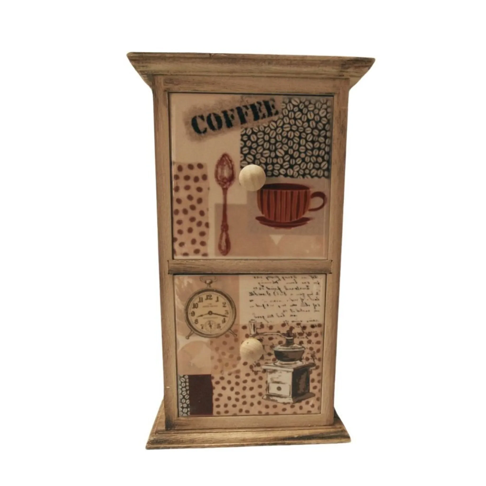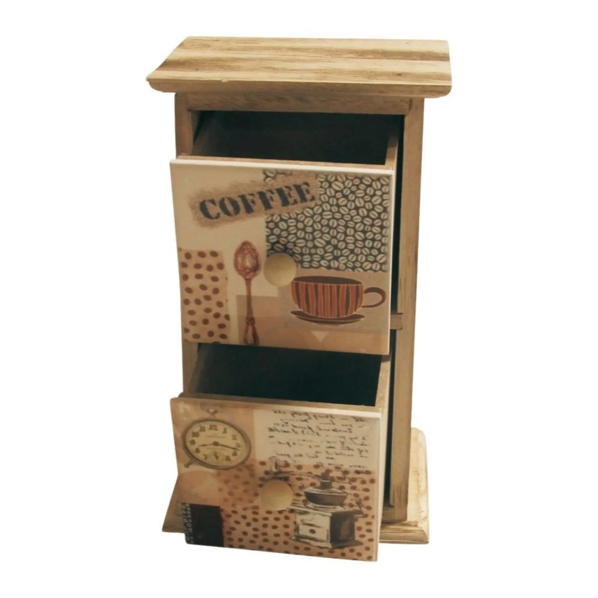 Mit 2 Schubladen · Balsa-Holz · Keramikfronten mit Kaffee-Motiv