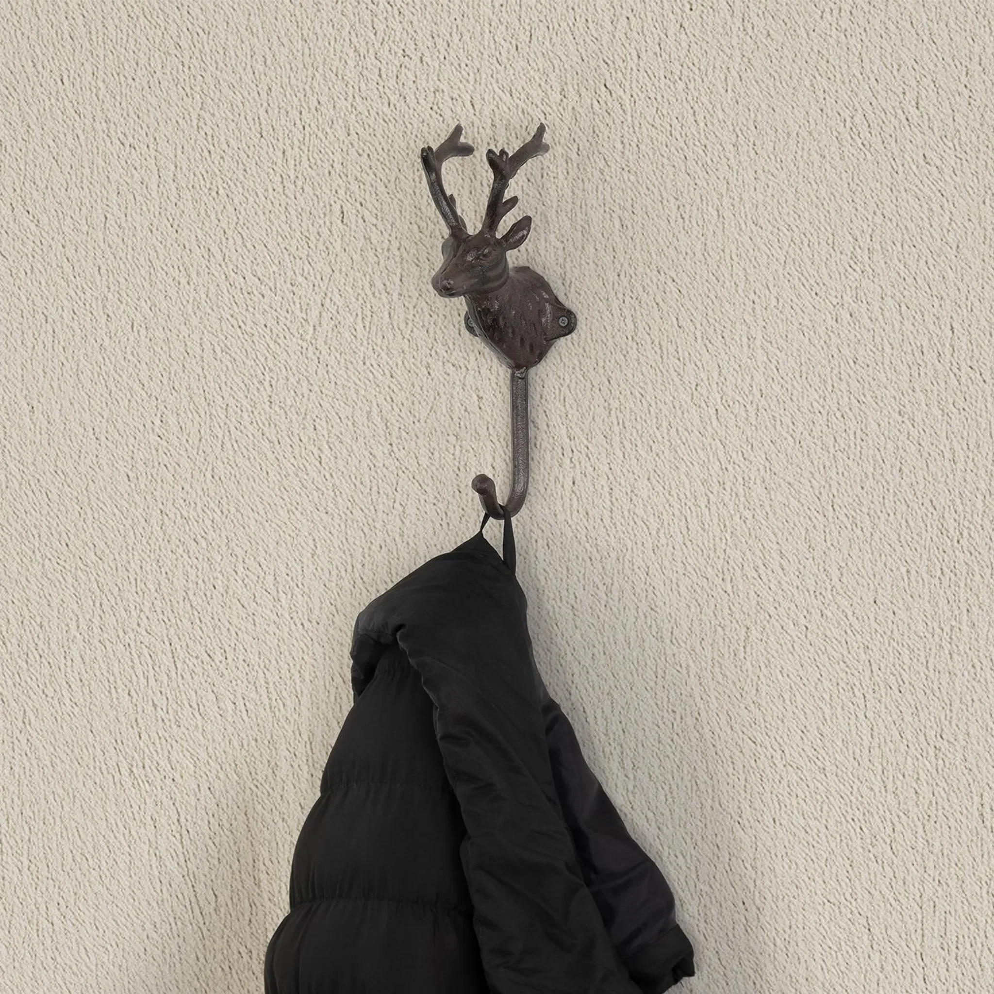 Dieser detailreiche Wandhaken in Hirschform kombiniert rustikale Gusseisen-Optik mit praktischer Funktion. Sein naturinspiriertes Design wird zum dekorativen Blickfang in Flur, Garderobe oder Jagdzimmer – ideal für Wohnumgebungen im Landhaus- oder Vintage-Stil.