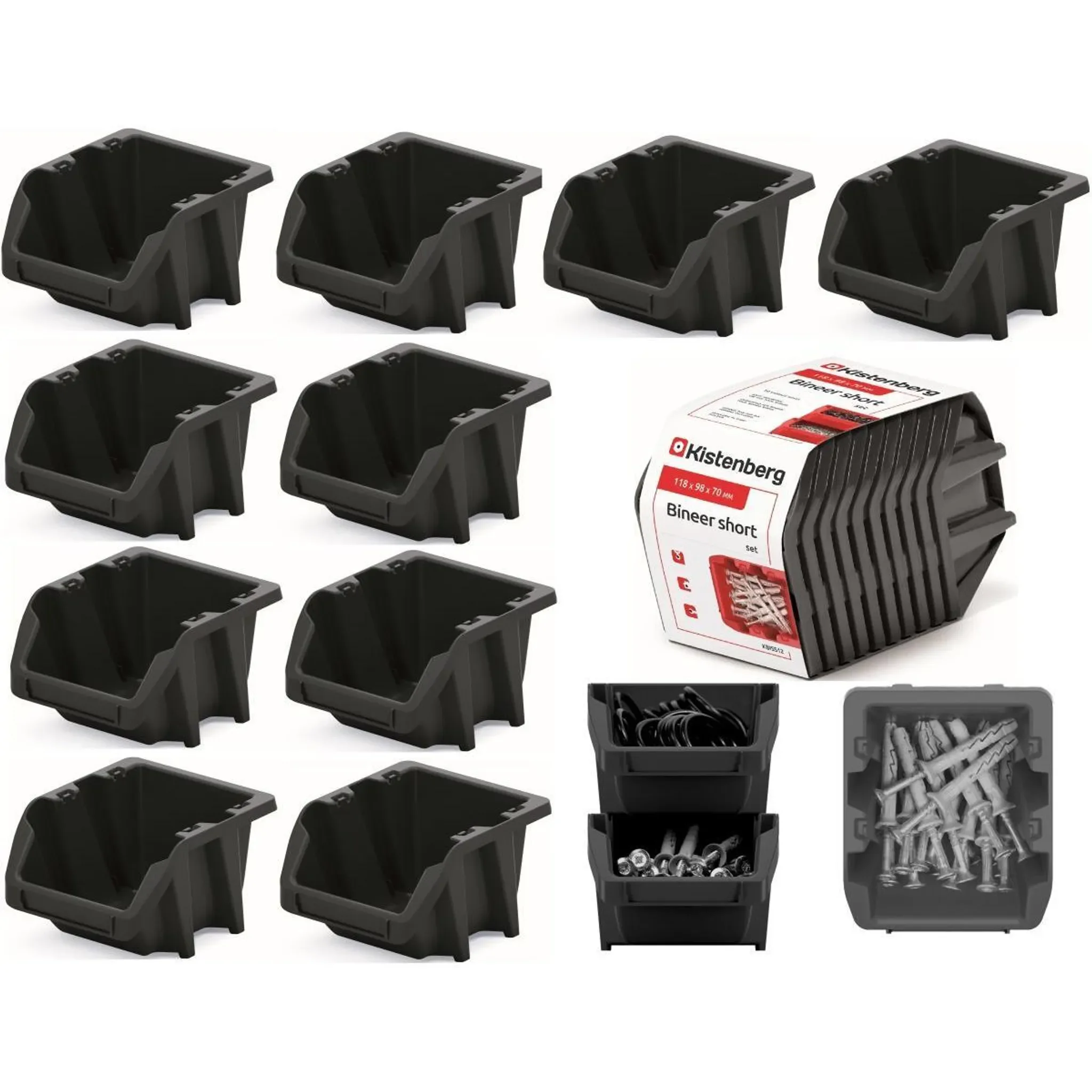 Dieses 10-teilige Sortierboxen-Set der Serie BINEER SHORT von Kistenberg hilft bei der sauberen Aufbewahrung kleiner Teile wie Schrauben, Bolzen, Nägel, Knöpfe, Gewinde oder Zubehör. Ideal für Werkstatt, Garage oder Hobbyraum.
