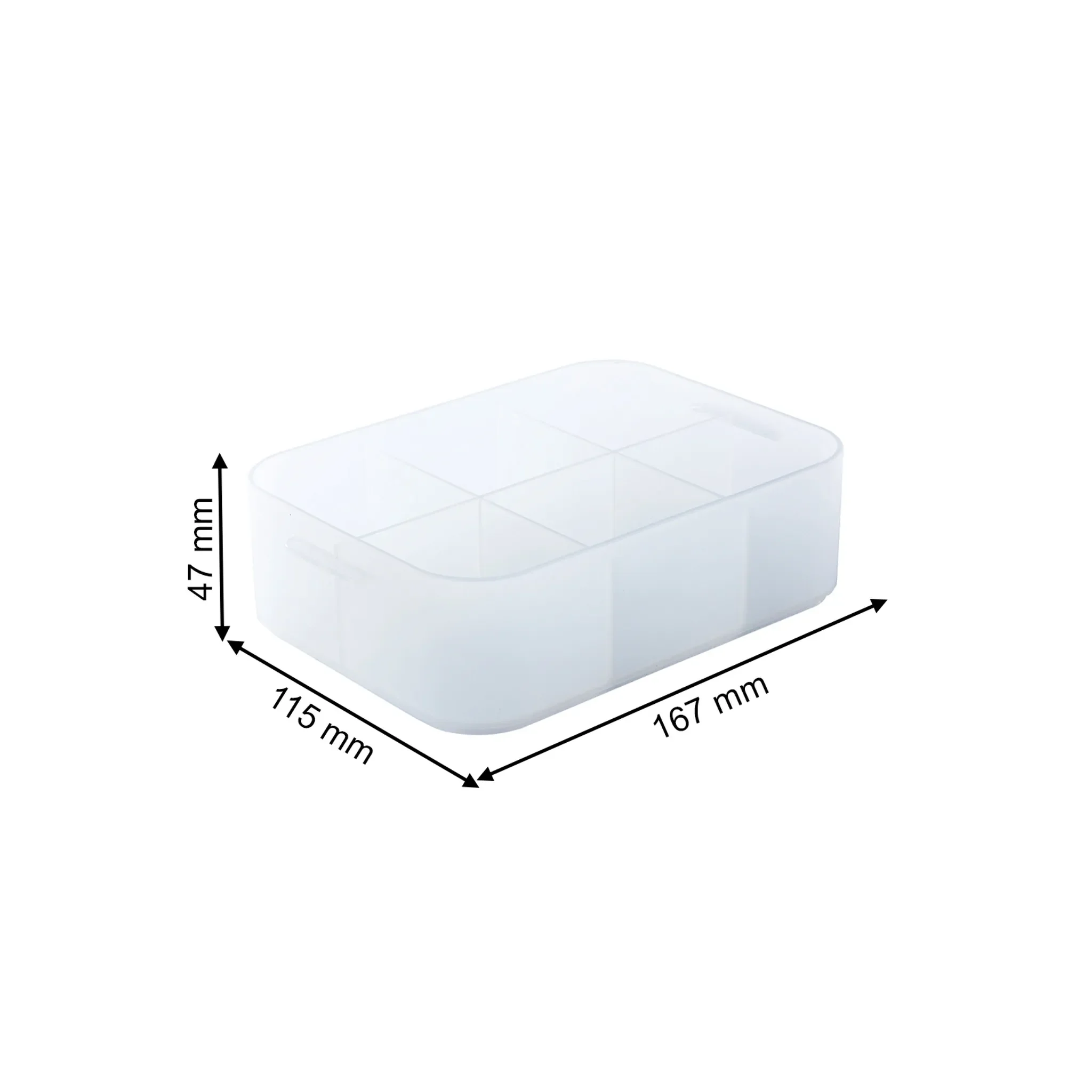 Die Rotho PURE Box in DIN A6 unterstützt eine geordnete Aufbewahrung von Kleinteilen wie Bastelmaterial, Kosmetik, Schmuck, Spielzeug oder Büro-Utensilien. Die integrierte 6er-Unterteilung sorgt für klare Struktur und erleichtert das Auffinden von Kleinigkeiten im Alltag.