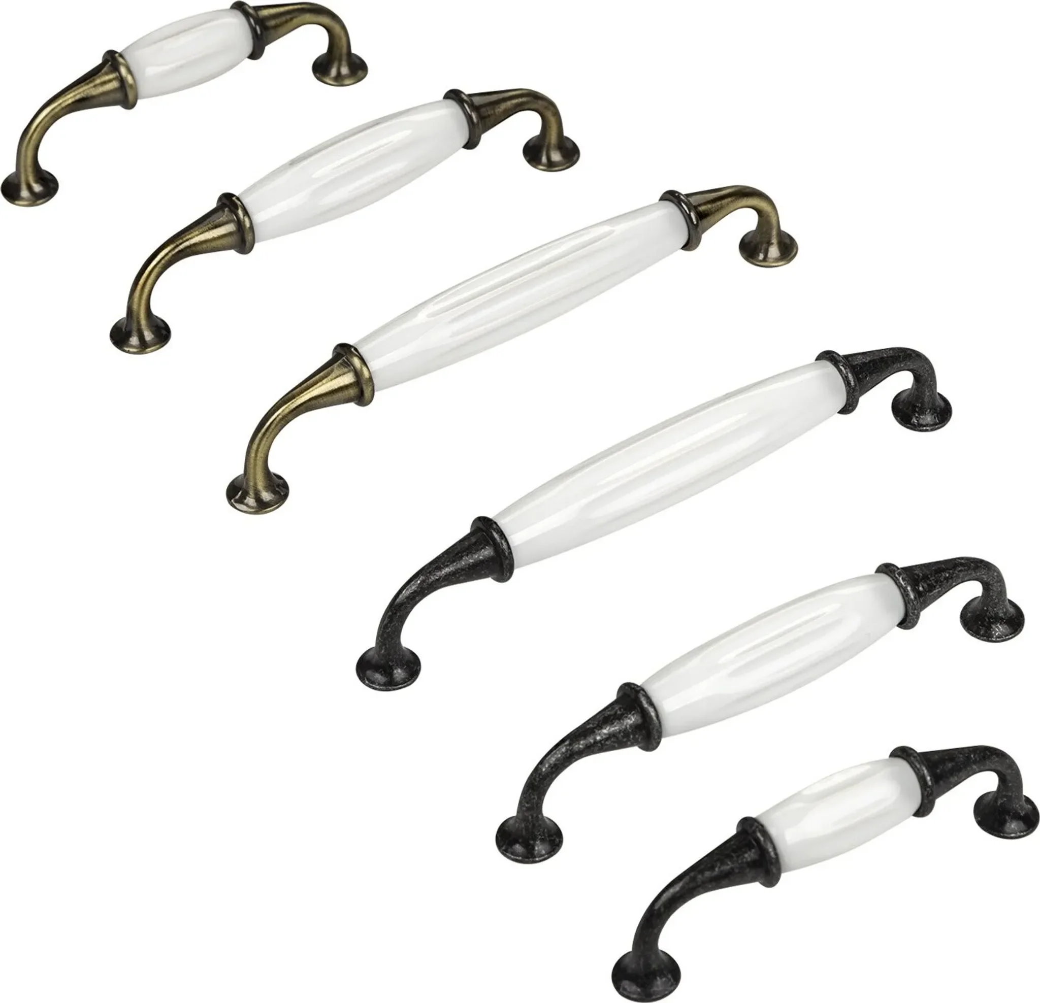 SOTECH – Porzellangriff „JOHANNA“ BA 96 mm, Antik-Messing/Weiß