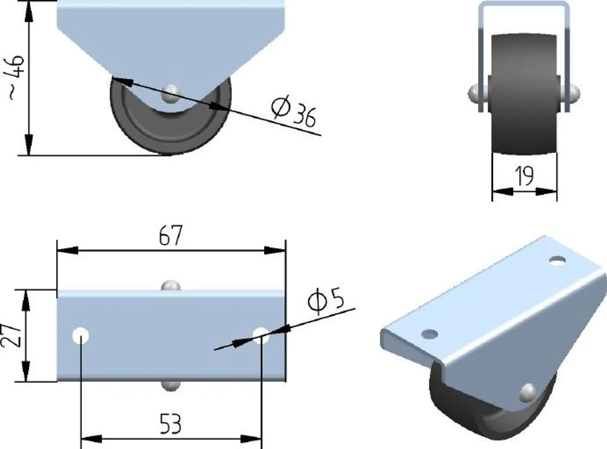 Die Möbelrolle RM-010 mit Ø 36/46 mm bietet eine langlebige, gleichmäßige Mobilität für vielseitige Möbelanwendungen. Das robuste Kunststoffrad sorgt für leises und kontrolliertes Rollen auf harten Bodenflächen wie Laminat, Parkett, Fliesen oder Marmor.